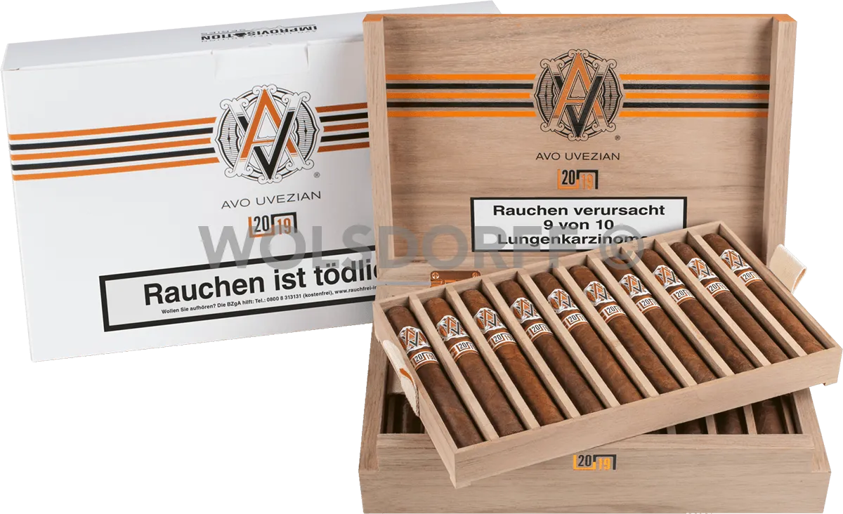 Die vielfältigen Geschmacksnuancen reichen von süßem Zedernholz bis hin zu erdigen Noten und sorgen für eine ausgewogene Balance aus reichhaltiger Creme und erdiger Würze. Die erfolgreiche Verwendung von insgesamt sieben verschiedene Tabaksorten aus drei unterschiedlichen Ländern (Ecuador, Peru, Dominikanische Republik) zeigt die Handwerkskunst AVO's Master Blender. Das samtweiche Deckblatt weist zu Beginn eine Kombination aus süßem Zedernholz und erdigen Noten auf. Das dominikanische Umblatt enthält fünf verschiedene Tabaksorten als Einlage, die sowohl aus dominikanischen als auch aus peruanischen Blättern bestehen und dadurch eine komplexe, intensive Gaumenstimulation mit einem perfekten Gleichgewicht zwischen reichhaltiger Sahne und erdiger Würze bieten.