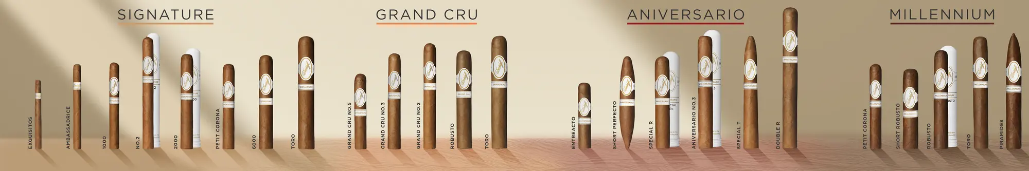 Die Grand-Cru Serie ist der Nachfolger der Chateau Serie, die aus Zino Davidoffs Liebe zu Wein entstand. Sorgfältig ausgesuchte Tabakblätter kreieren ein holziges, nussiges und leicht würziges Geschmackserlebnis mit pfeffrigen Noten.